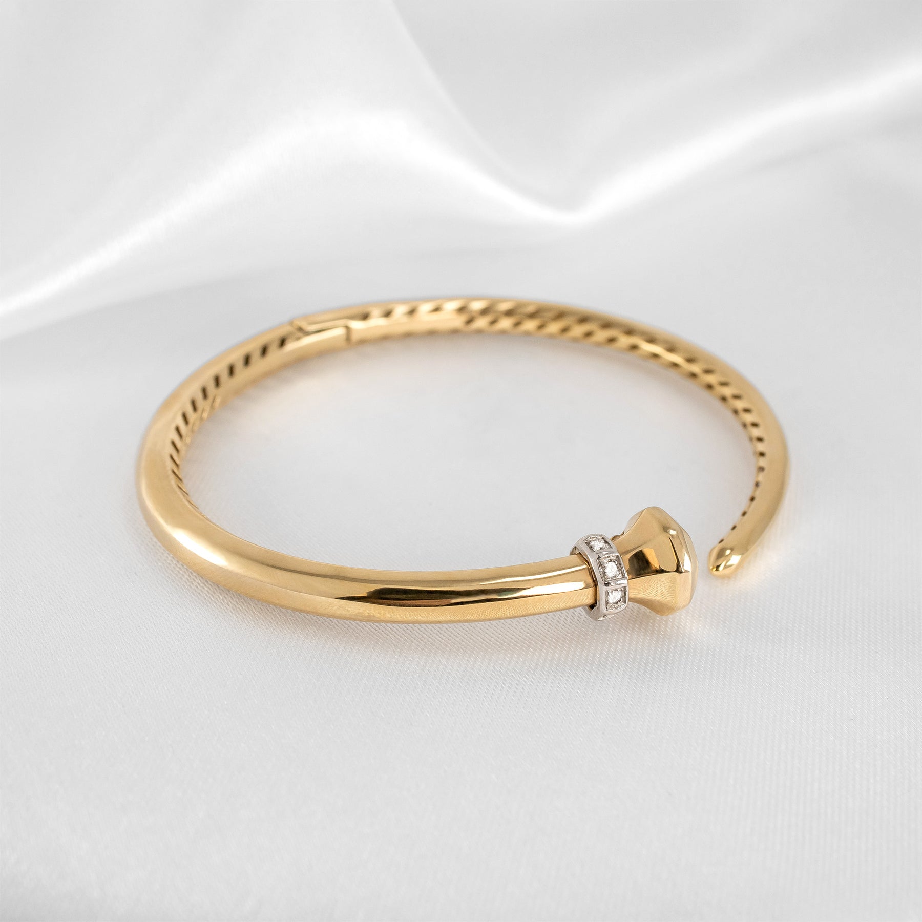 Style: Gold diamond bangle bracelet, hinged diamond bracelet, everyday fine jewelry