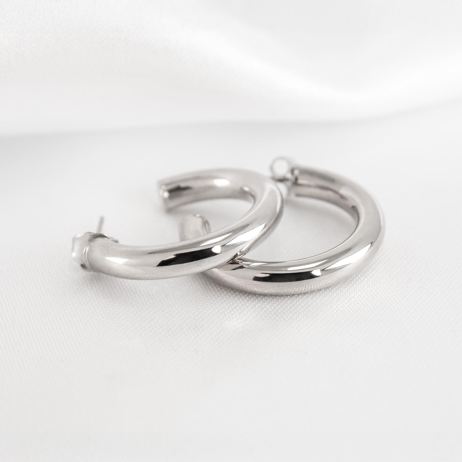 Offered in four sizes, these bold 4-5mm thick tubular hoops are a bold statement in a light weight design.